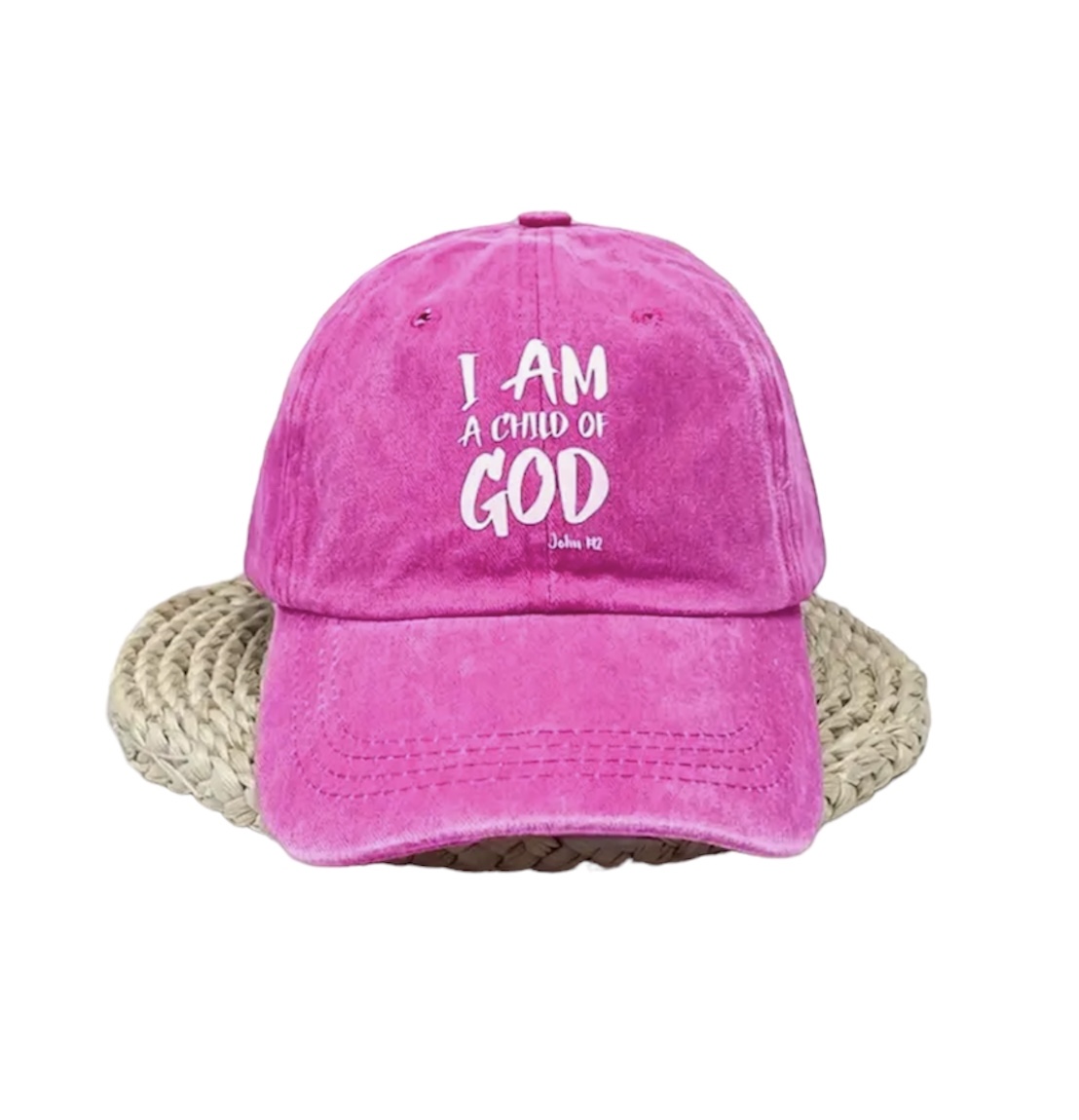 PINK, WASH AWAY I AM A CHILD OF GOD CAP. SNAP BACK